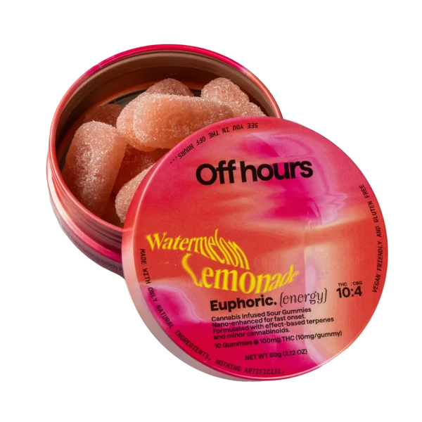 Experience Euphoria with our sour Watermelon Lemonade Gummies, infused with an energizing blend of terpenes, THC and CBG. Nano-enhanced cannabinoids for fast onset. Vegan friendly and gluten free.